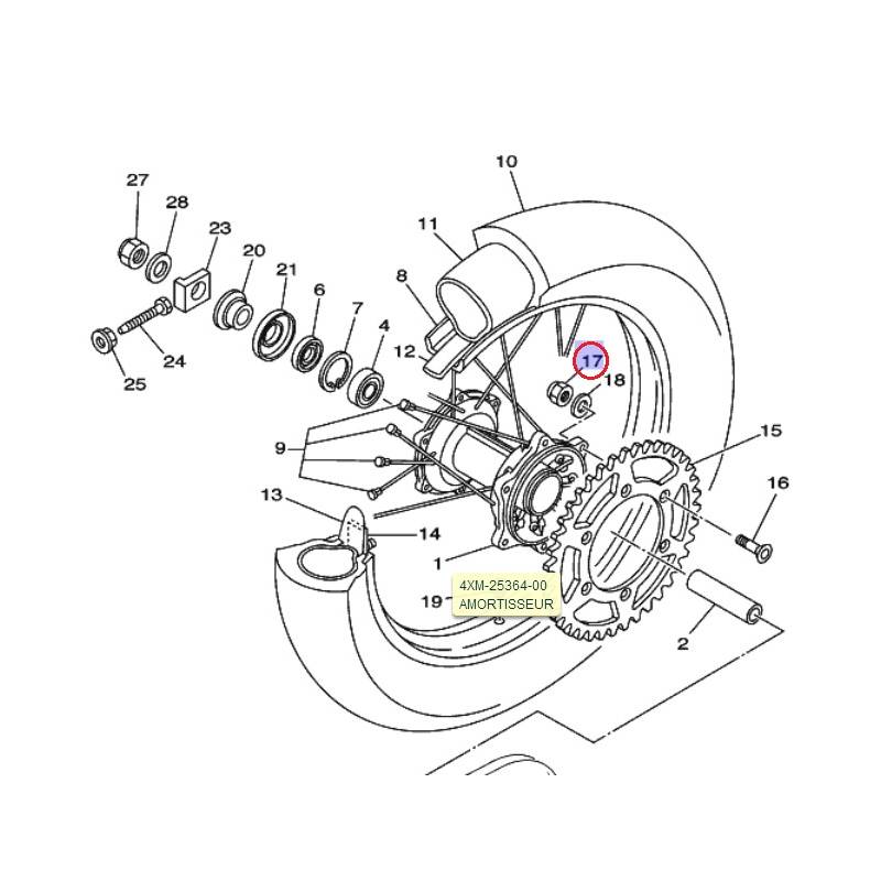 Ecrou auto blocant Roue arrière, cadre ... pour YAMAHA