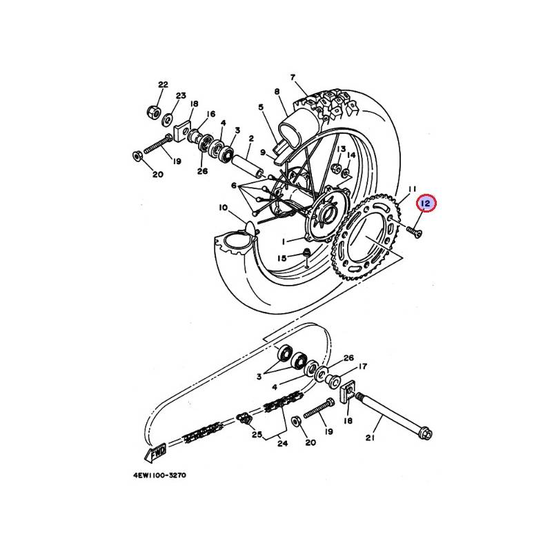 Vis de disque arrière pour YAMAHA YZ125 86-93, YZ250 86-94, TY250 86-91, XV535 92, WR250Z 91-92